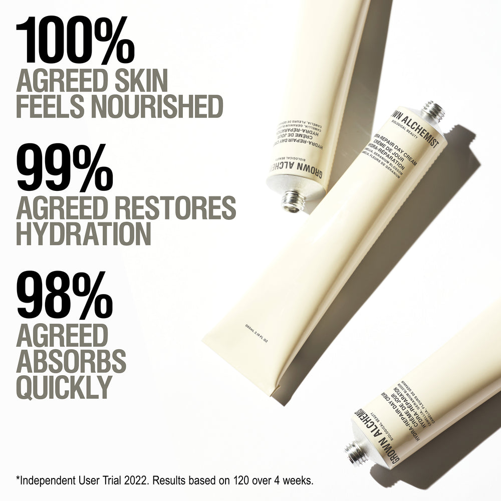 Moisturise and nourish the skin with our lightweight yet incredibly hydrating Hydra-Restore Day Cream.. Home to a kind-to-skin (and 97% natural) formula of soothing Aloe, Vitamin E, Glycerin, Camelia and Rosehip Oil, it works wonders for quenching thirsty skin and leaving it smooth, soft and plump. Non-greasy, fast-absorbing and with a luxurious cream texture, it also promises to leave no residual oil or unwanted shine and instead reveals a fresh and radiant glow whilst also paving the way for seamless makeup application too.