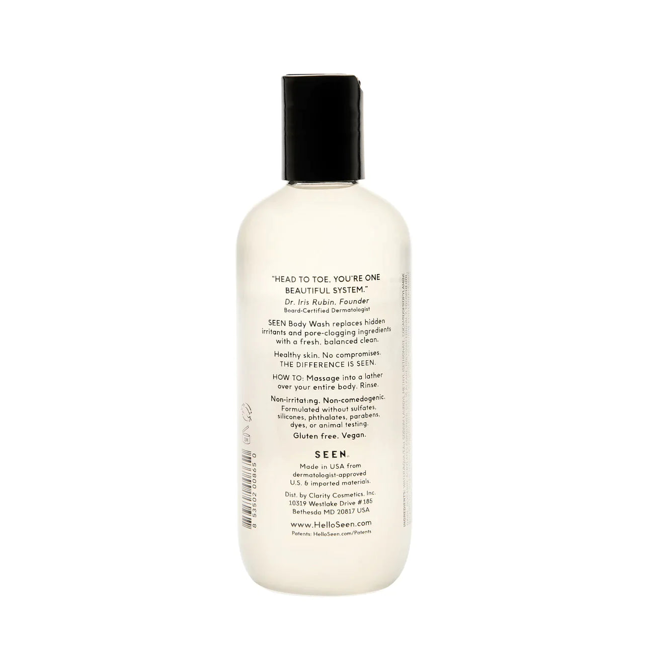 Developed by a dermatologist, this body wash provides SEEN’s non-irritating, non-comedogenic benefits for every square inch of your skin. The mild formula features naturally-derived, sulfate-free surfactants that leave skin feeling fresh and balanced, while removing hidden irritants and pore-clogging oils.